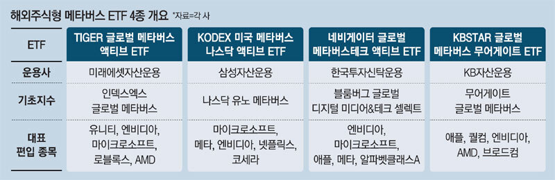 메타버스처럼 빠르게 성장하는 분야에는 종목 편·출입이 비교적 자유로운 액티브 ETF가 대응에 유리하다는 판단이 작용한 것으로 풀이된다.