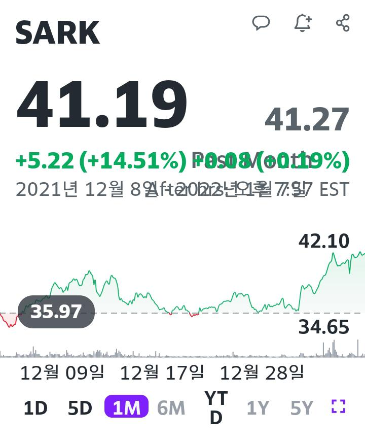 5일(현지시간) 기준 SARK의 수익률은 29.1%에 달한다.