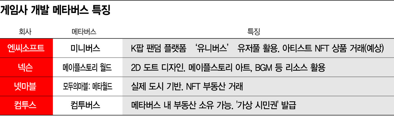 특히 게임사는 기존 게임 개발 및 서비스 노하우를 바탕으로 메타버스 사업 준비에 박차를 가하고 있다.