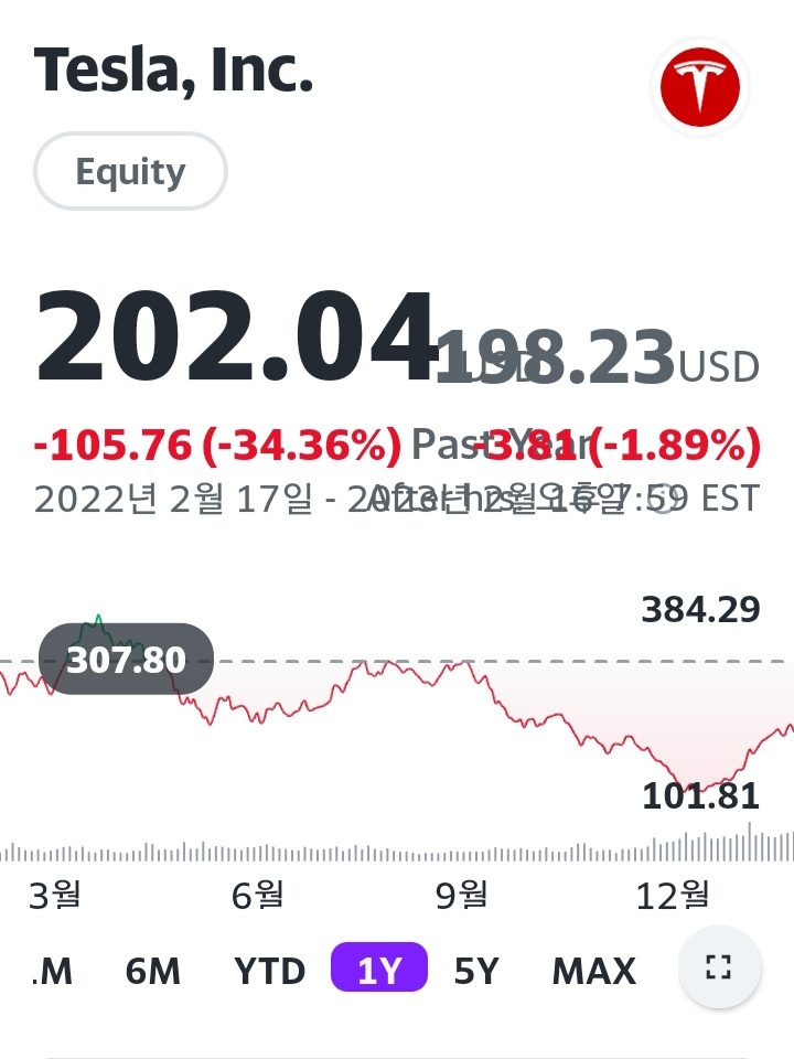 아래 표에서 보는 바와 같이 테슬라 원주의 과거 1년 수익률은 -34.36%, DR의 수익률은 -35.71%로 가격변동성도 거의 동조화를 보이고 있다.