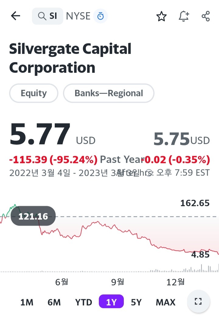 미국 가상화폐 거래 은행인 실버게이트 캐피털에 대한 뱅크런(대규모 인출 사태) 우려 때문에