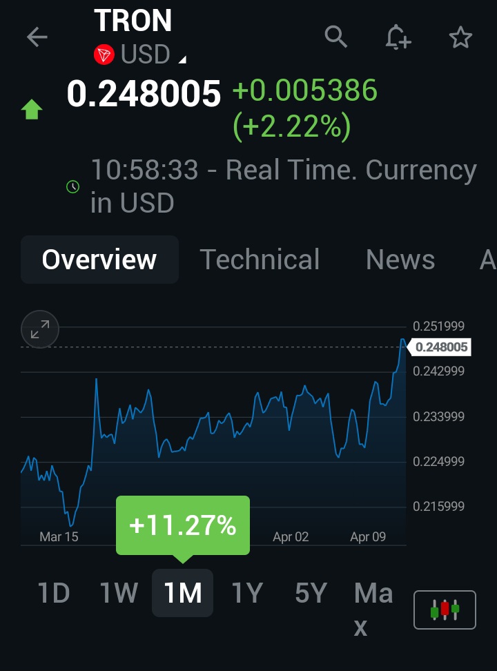 반면 시총 9위에 위치한 트론(TRX)은 전월 대비 6% 상승했다.