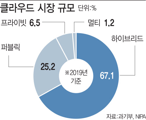 클라우드 시장에서는 하이브리드 클라우드가 큰 비중을 차지한다. 이는 민감한 데이터는 기업 자체 데이터센터에 저장하면서도 클라우드 컴퓨팅의 이점은 활용할 수 있게 하는 시스템이다. 보안을 중시하는 국내 기업들에게 적합한 클라우드 상품으로 평가 받는다.