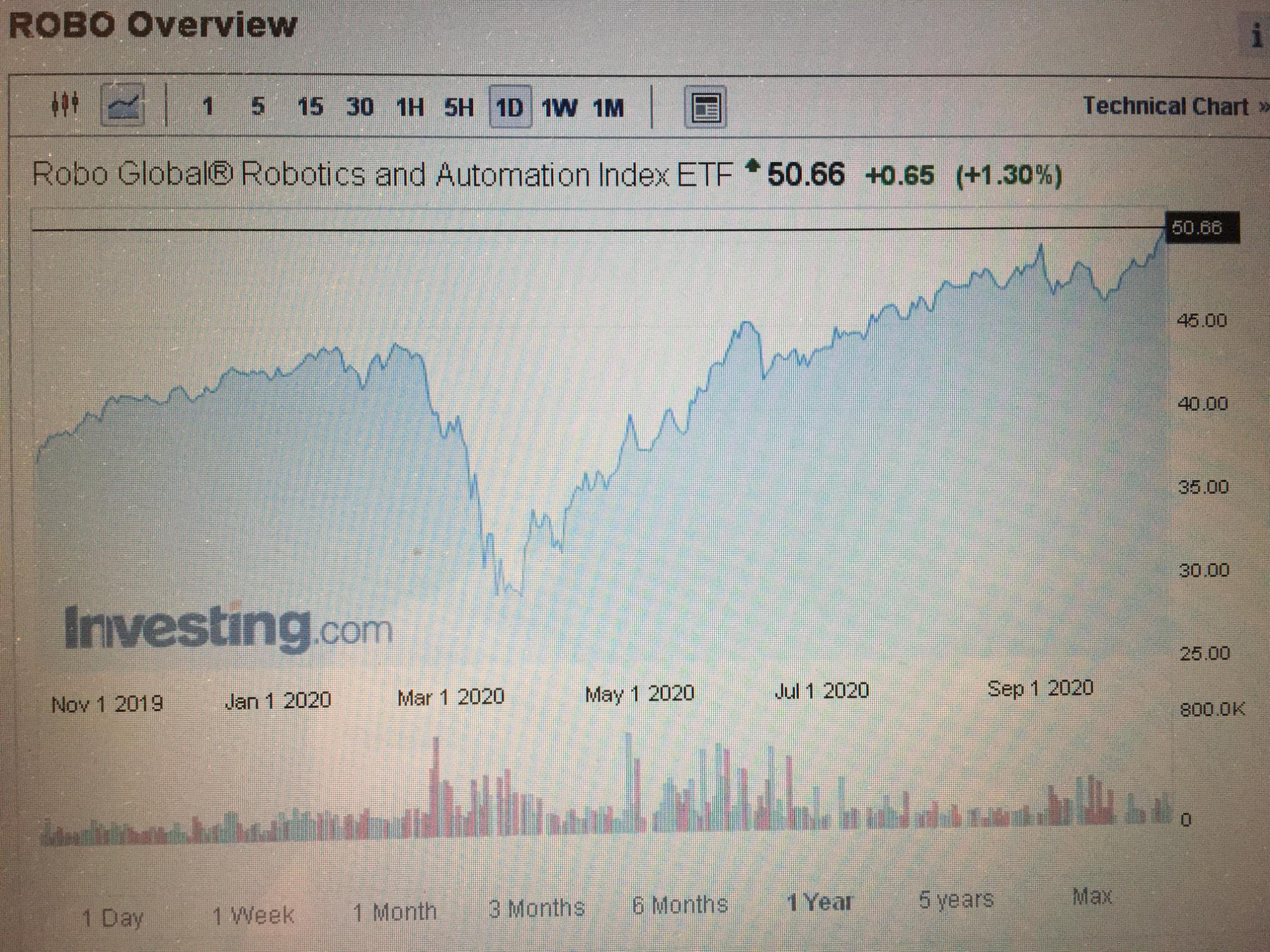 신종 코로나바이러스 감염증(코로나 19) 이후에 로봇 테마 상장지수펀드(ETF)에 대한 투자자에 대한 관심도 더욱 높아졌다.
