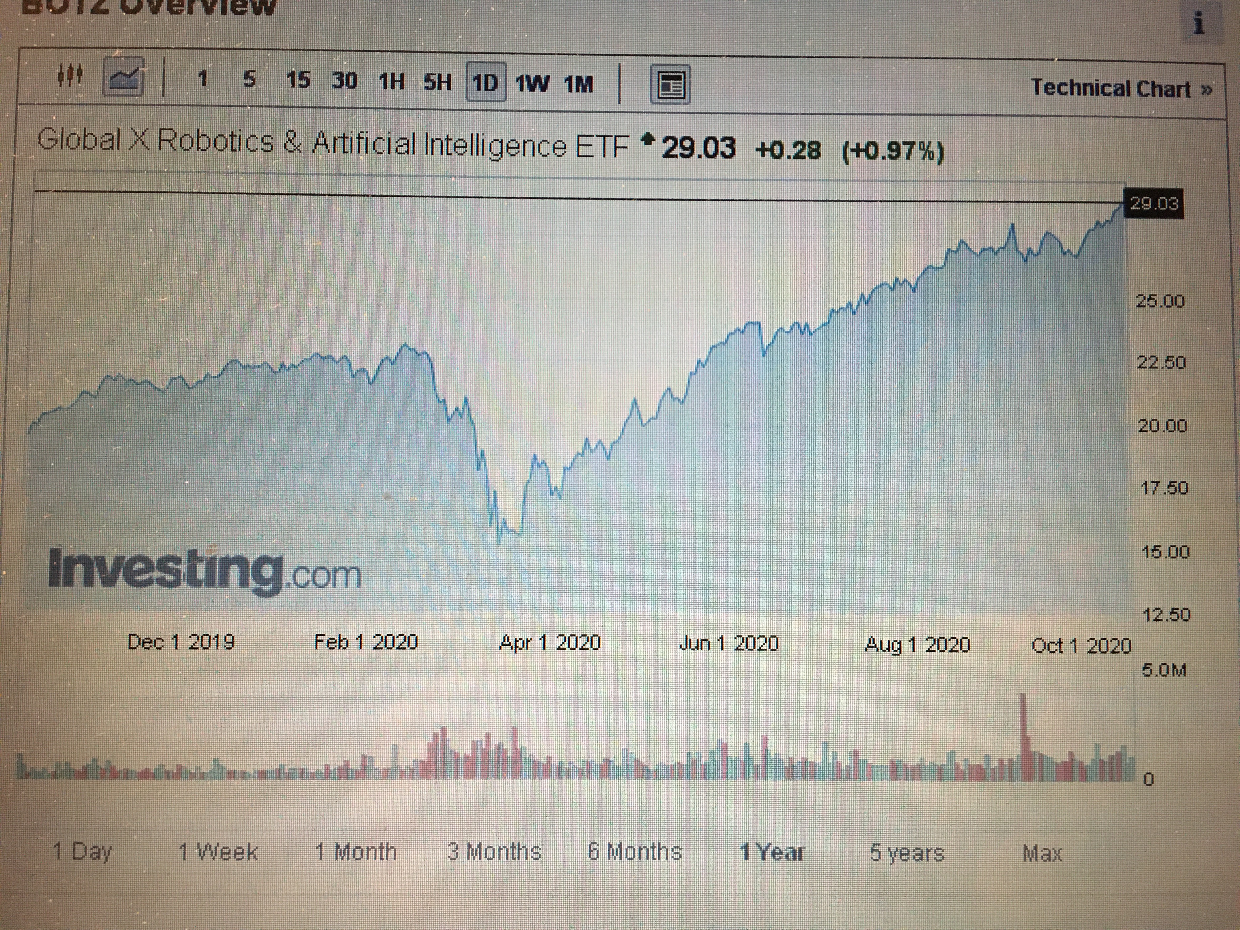 캐나다에는 Horizons Robotics and Automation Index ETF (RBOT.TO)가 있으나 거래량이 그리 많은 편은 아니다.