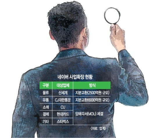 물류분야에서 CJ대한통운, 유통에서 신세계 등 각 업종 1위 업체와 지분투자 및 양해각서(MOU)를 체결하는 방식으로 영역을 넓히고 있다. 각 업종의 1위 업체와 손을 잡고 해당 시장에서 우월적 지위를 누리면서도 규제에서 자유롭다는 것이다.